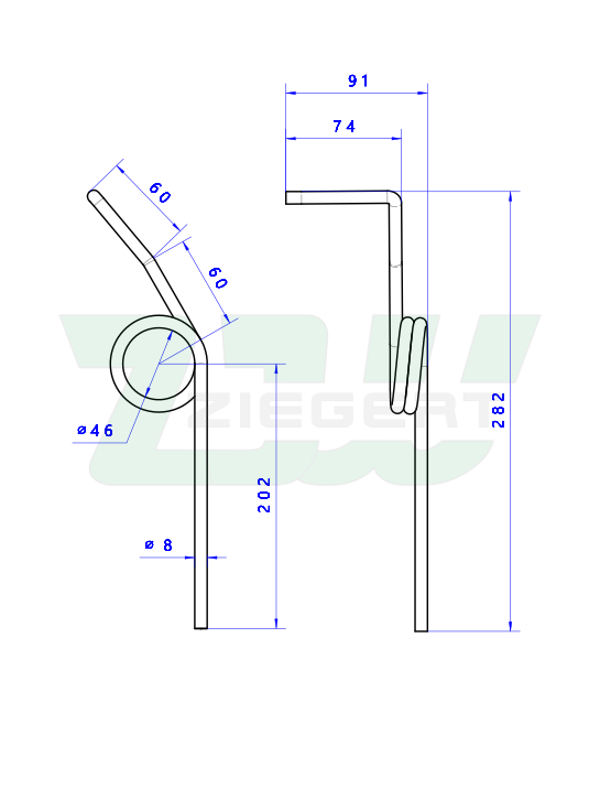 Sprężyna zagarniacza lewa pasuje do siewnika Famarol, Polonez (aa641, 30801900001)
